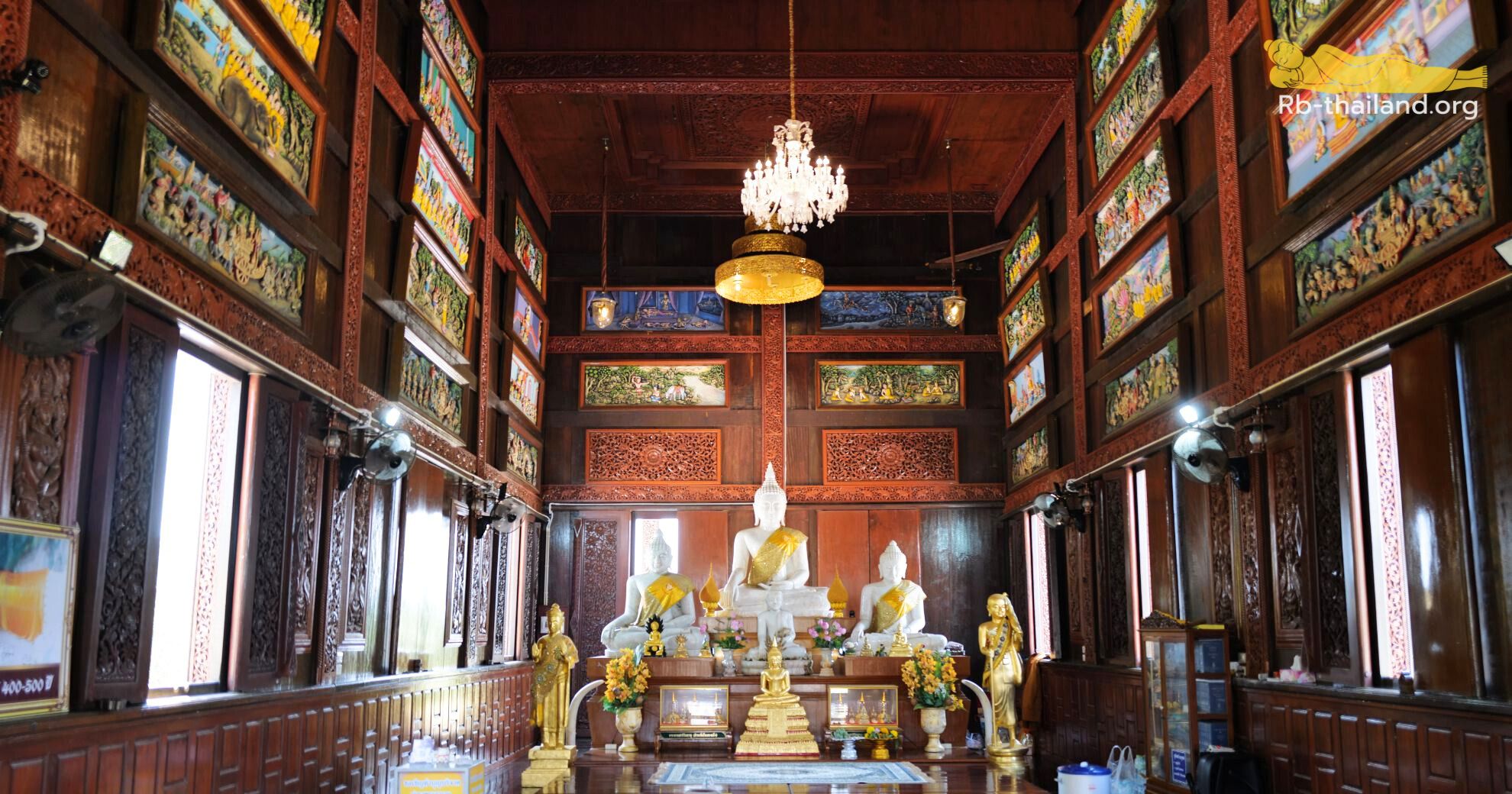 บริเวณภายในวัด มีโบสถ์ไม้สักทอง เป็นความสวยงามที่ออกแบบและตกแต่งได้อย่างประณีต ภายในประดิษฐานพระพุทธรูป เพื่อให้นักท่องเที่ยวเข้ามาสักการะขอพร และประดับตกแต่งด้วยจิตกรรมพุทธประวัติรอบผนังโบสถ์