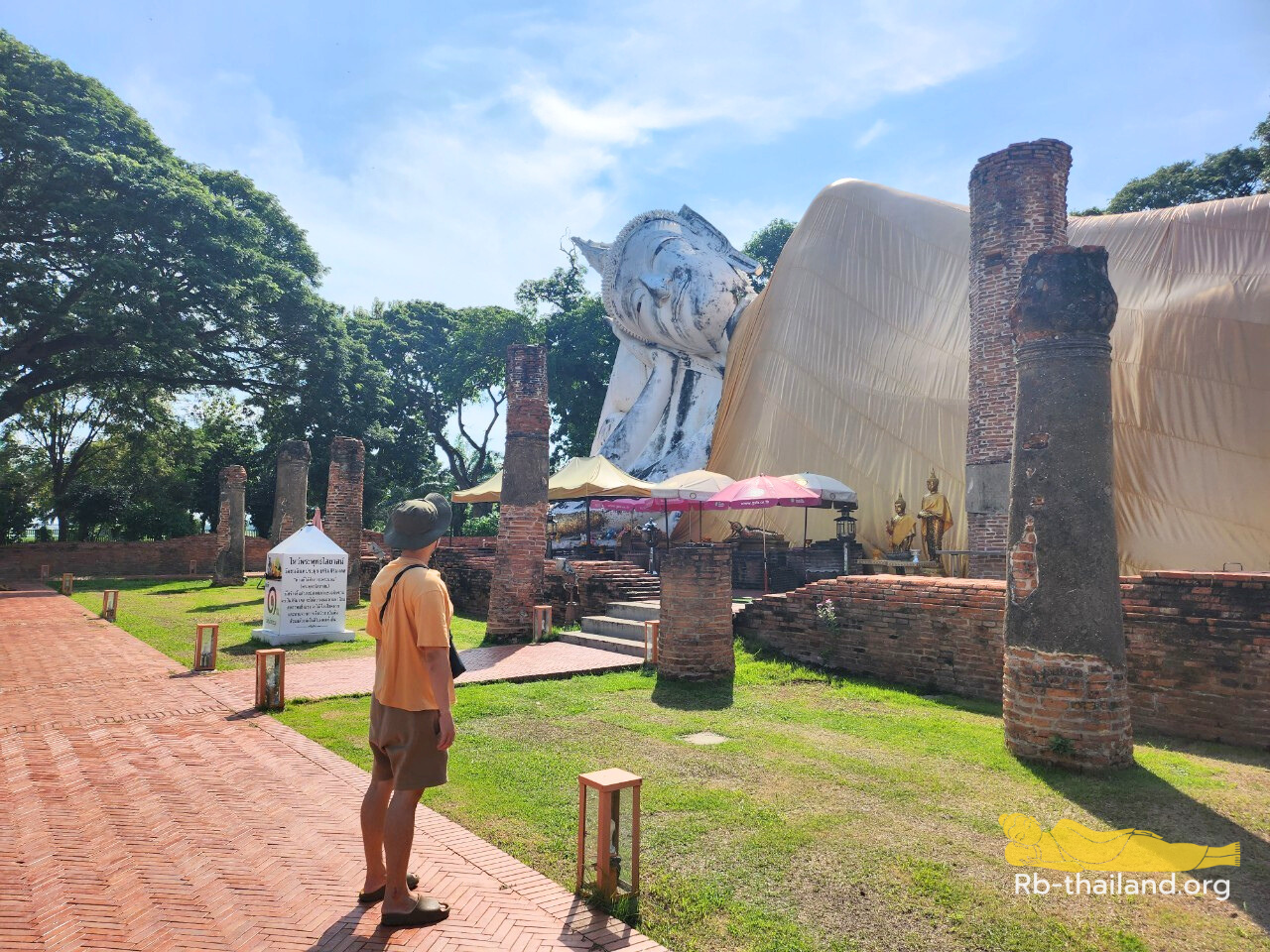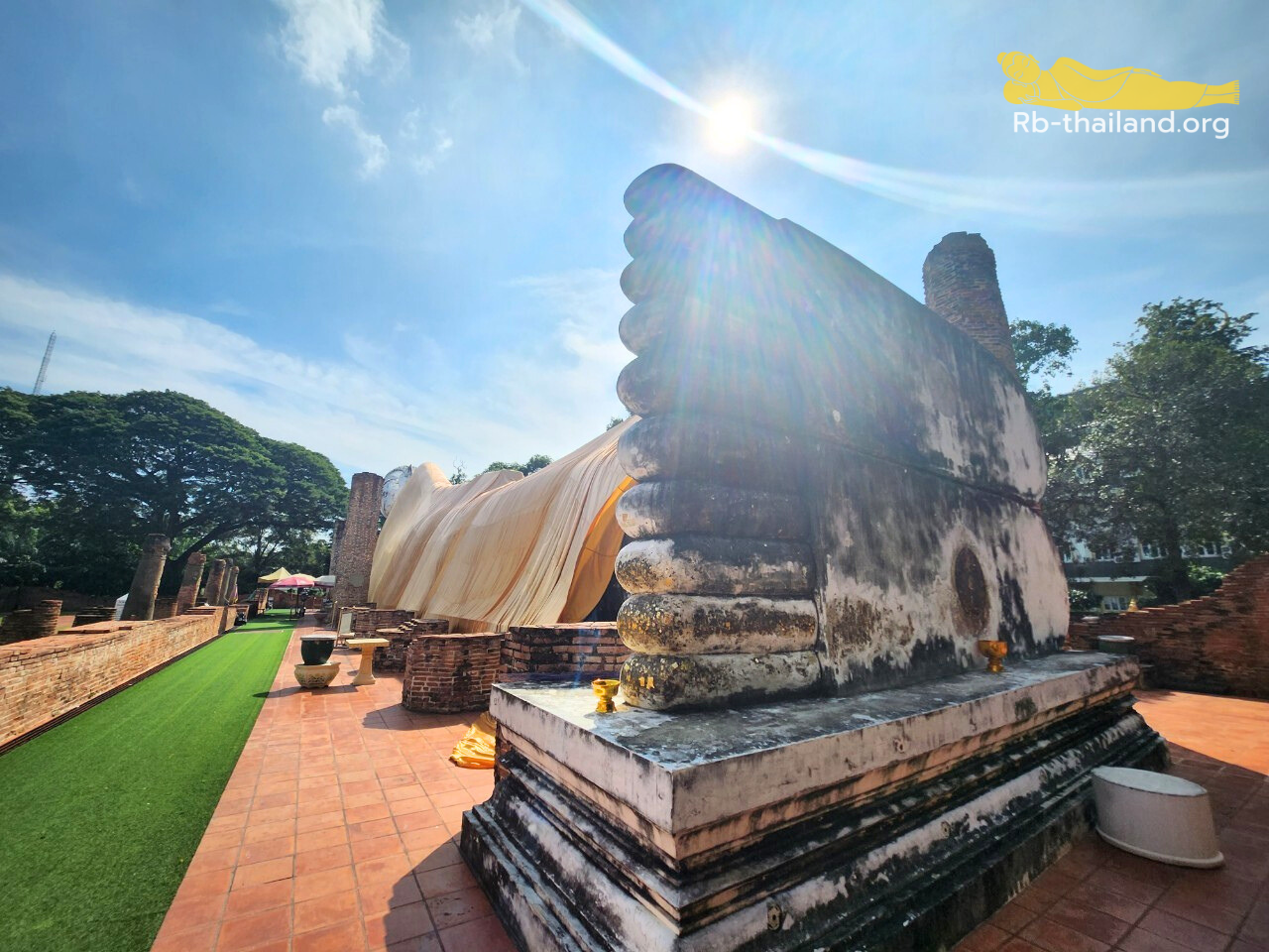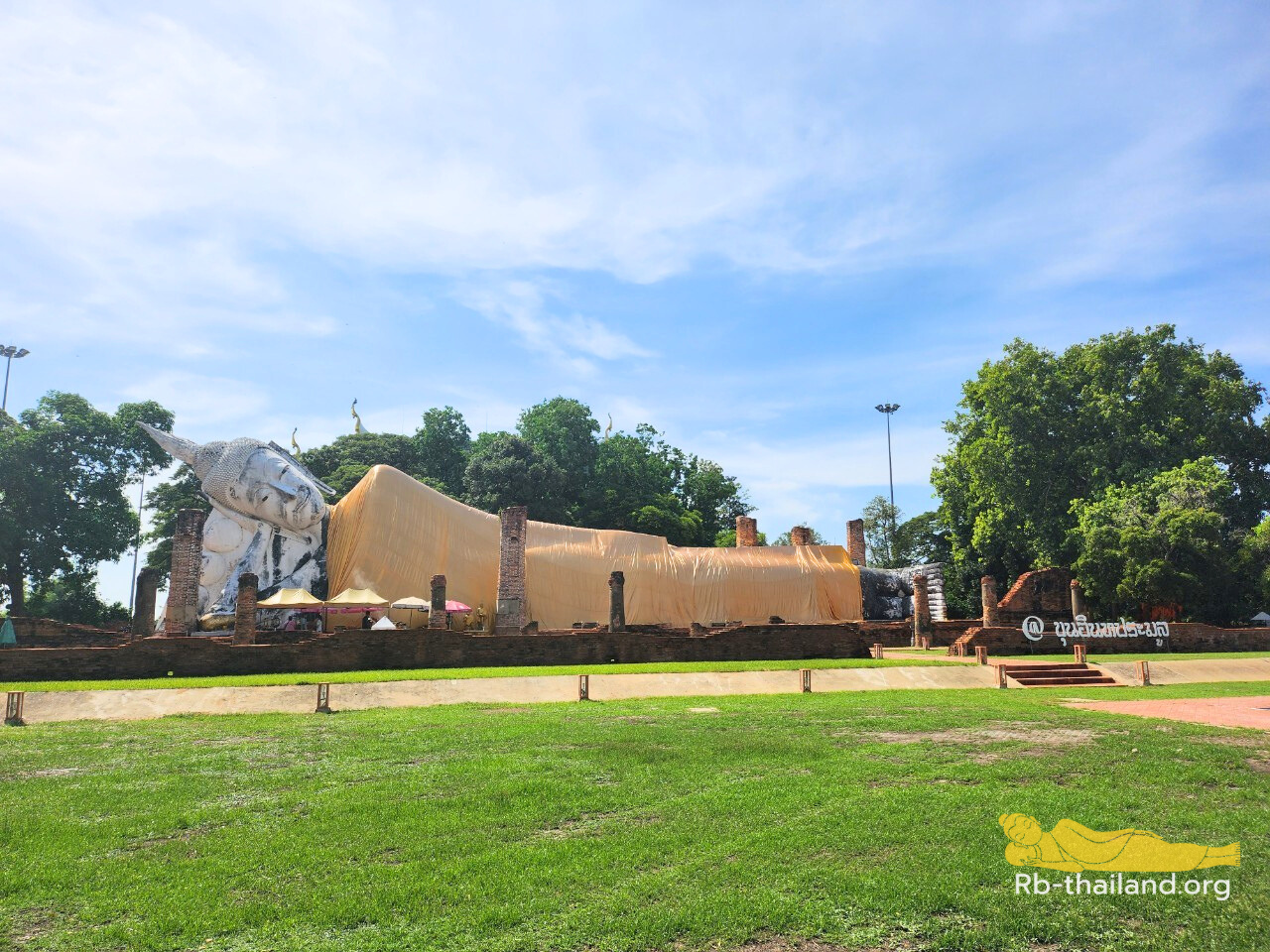 ปัจจุบัน องค์พระนอนประดิษฐานกลางแจ้ง ไม่มีวิหารปกคลุม แต่บริเวณรอบองค์พระมีต้นไม้ขนาดใหญ่หลายต้น ทำให้มีความสงบร่มเย็น ซึ่งก็ได้บรรยากาศที่แปลกไปจากภายในพระวิหาร