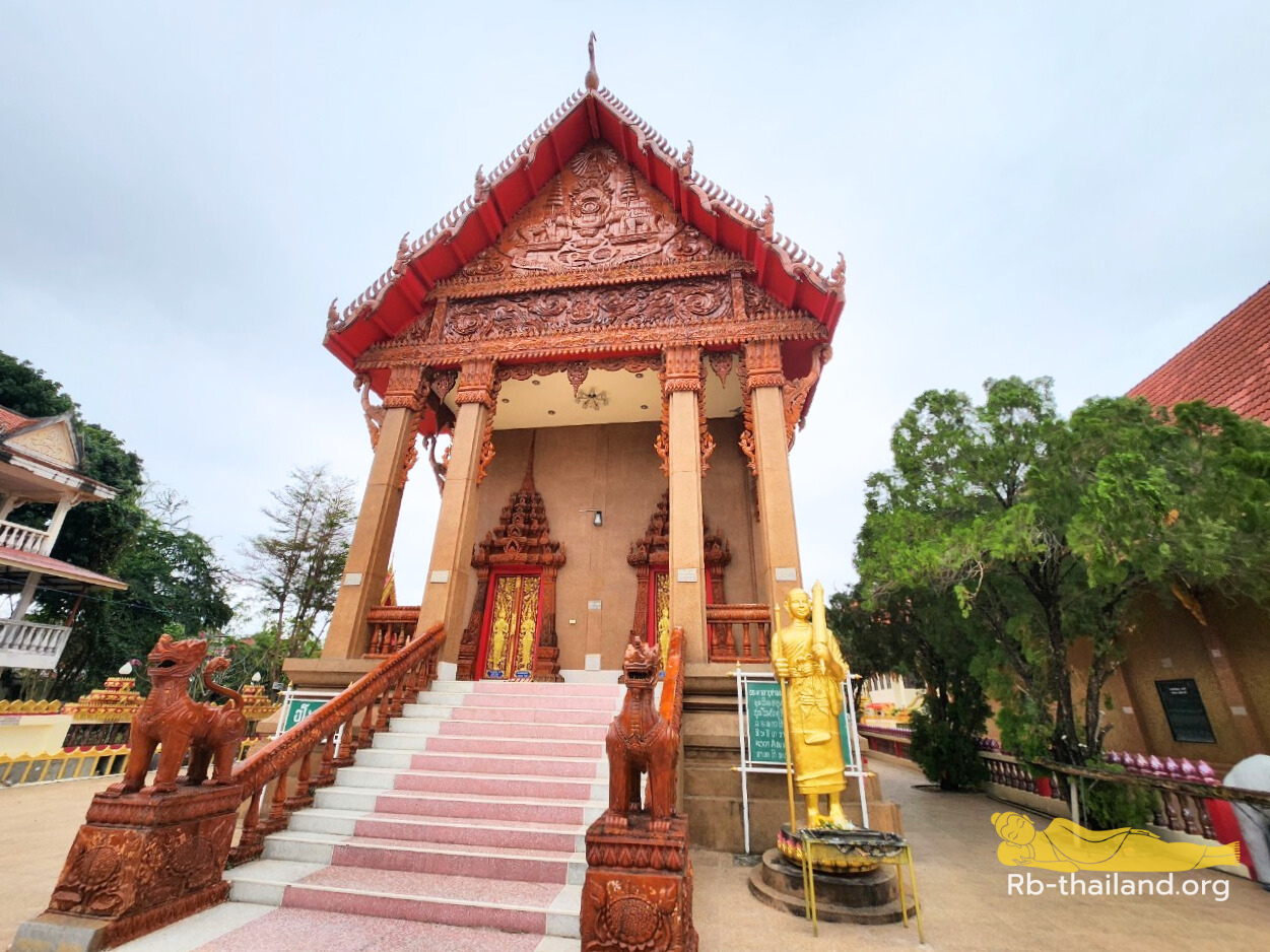 ถัดจากวิหารพระพุทธไสยาสน์เป็นพระอุโบสถ วางศิลาฤกษ์เมื่อวันที่ 11 มีนาคมพ.ศ. 2539 ซึ่งมีพระสิวลีประดิษฐานอยู่ด้านหน้า แต่เนื่องจากวันที่ RB-Thailand ได้เดินทางไปนั้น พระอุโบสถไม่ได้เปิดให้เข้าชม จึงไม่ได้เห็นความงดงามด้านในพระอุโบสถ