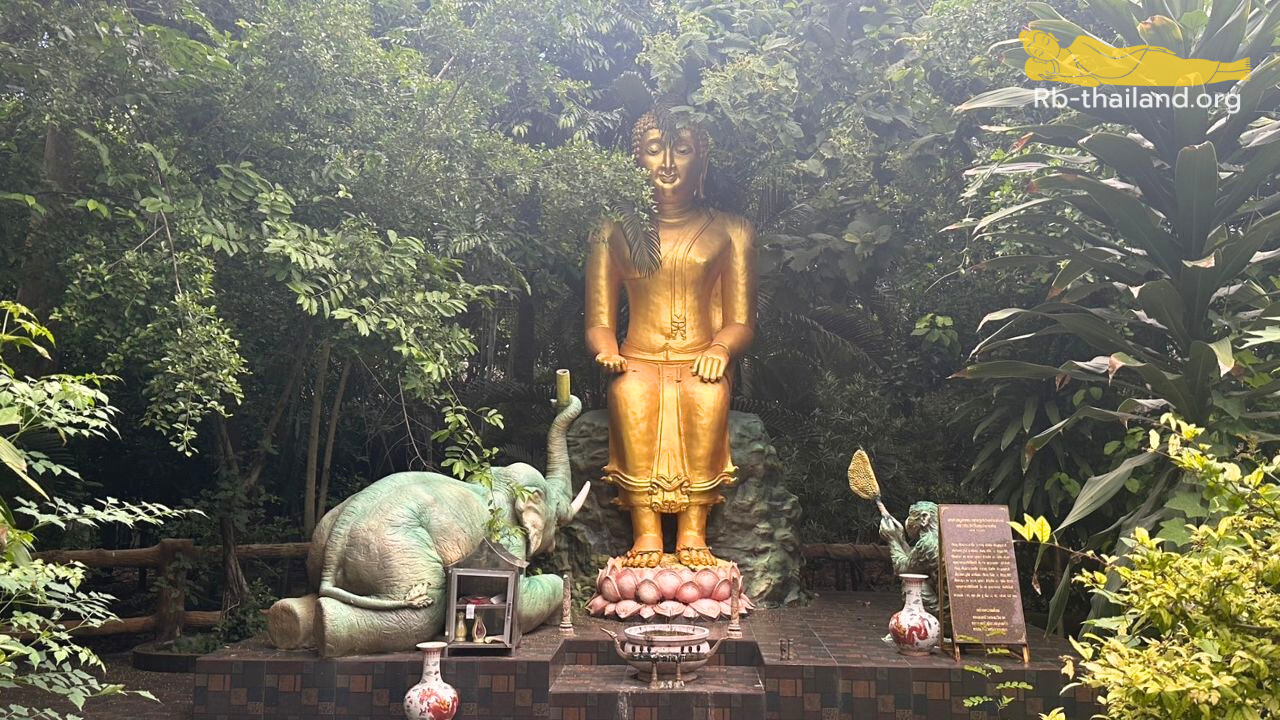 ภายในวัดตั้งแต่ทางเข้ามีรูปปั้นพญานาคขนาดใหญ่ และมีอนุสาวรีย์ทางศาสนามากมาย ทั้งองค์หลวงปู่ใหญ่สีขาวสวยงาม พระพรหม พระสังกัจจายน์ องค์เจ้าแม่กวนอิมหยก เจดีย์ใหญ่ที่ยังก่อสร้างไม่แล้วเสร็จ พระพุทธรูปปางนาคปรก พระพุทธรูปปางป่าเลไลย์ พระพุทธรูปปางประสูติ รวมถึงพระพุทธรูปปางไสยาสน์องค์ใหญ่สีทอง สะดุดตา ประดิษฐานอยู่ภายในโถงใหญ่ เงียบสงบ พื้นที่เหมาะสำหรับสวดมนต์ กราบไหว้ และสามารถนั่งสมาธิได้อีกด้วย