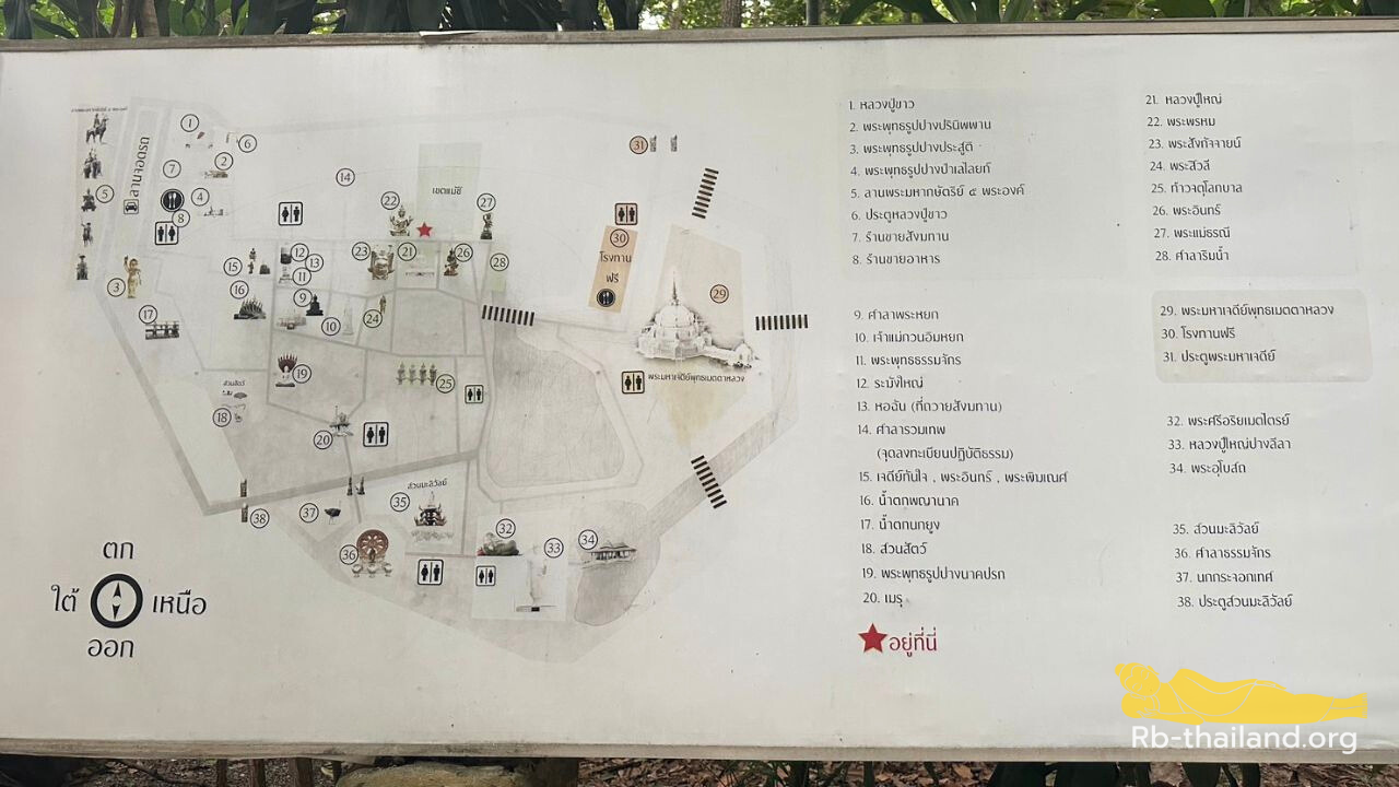 หากไม่รู้ทาง ในวัดก็จะมีแผนที่ขนาดใหญ่บอกตำแหน่งของพระพุทธรูปแต่ละจุดเพื่อให้ได้ไปกราบไว้ อีกทั้งยังมีน้ำตก มีสระน้ำให้อาหารปลา มีสะพานข้ามสระน้ำ และมีสัตว์มากมายภายในวัด มีสวนกระต่ายและสวนเต่าอีกด้วย