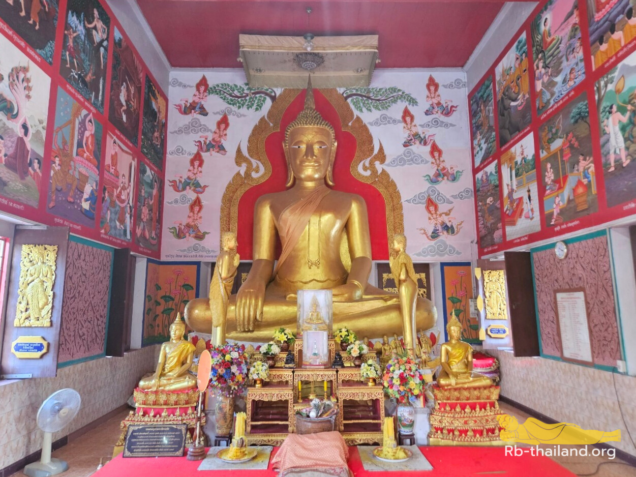 พระอุโบสถ ปัจจุบันสร้างขึ้นใหม่ทับพื้นที่เดิม ล้อมรอบด้วยใบเสมา 17 ใบ ลักษณะของใบเสมา เชื่อกันว่า น่าจะมีอายุสมัยอยุธยาตอนต้น และมี 1 ใบที่มีร่องรอยกระสุนปืนใหญ่สมัยสงครามกรุงศรีอยุธยา ประดิษฐานพระประธาน พระพุทธสุวรรณนิมิต หรือหลวงพ่อทอง พระพุทธรูป ปางมารวิชัย หน้าตักกว้าง 3.6 เมตร และภายในพระอุโบสถยังมีภาพจิตรกรรมฝาผนังบอกเล่าพุทธประวัติ และทศชาติชาดก 10 พระชาติสุดท้ายของพระพุทธเจ้า