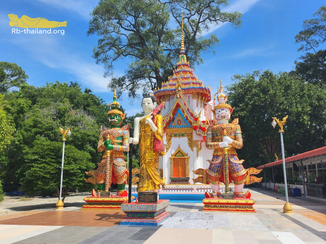 พระพุทธไสยาสน์ องค์พระห่อหุ้มด้วยผ้าไหมทอง ขนาดความยาว 18 วา 9 นิ้ว สูง 9 เมตร ทำพิธีวางศิลาฤกษ์ เมื่อวันที่ 12 พฤศจิกายน พ.ศ. 2531 สร้างโดยหลวงพ่อบุญ อดีตเจ้าอาวาส นำพุทธศาสนิกชนผู้ศรัทธา สร้างเพื่อเป็นพุทธบูชา องค์พระก่ออิฐปูนปั้น เปลวพระเกศก่อด้วยโลหะทองเหลือง ระยะเวลาการก่อสร้าง 8 เดือน ใช้ทุนทรัพย์ 3,490,000 บาทเศษ ต่อมาดำเนินการสร้างวิหารครอบองค์พระใช้งบประมาณ 3,600,000 บาท เสร็จสมบูรณ์เมื่อปี พ.ศ.2537 แต่วิหารพระนอนนั้นได้ถูกปิดมาตลอดตั้งแต่สร้างเสร็จ