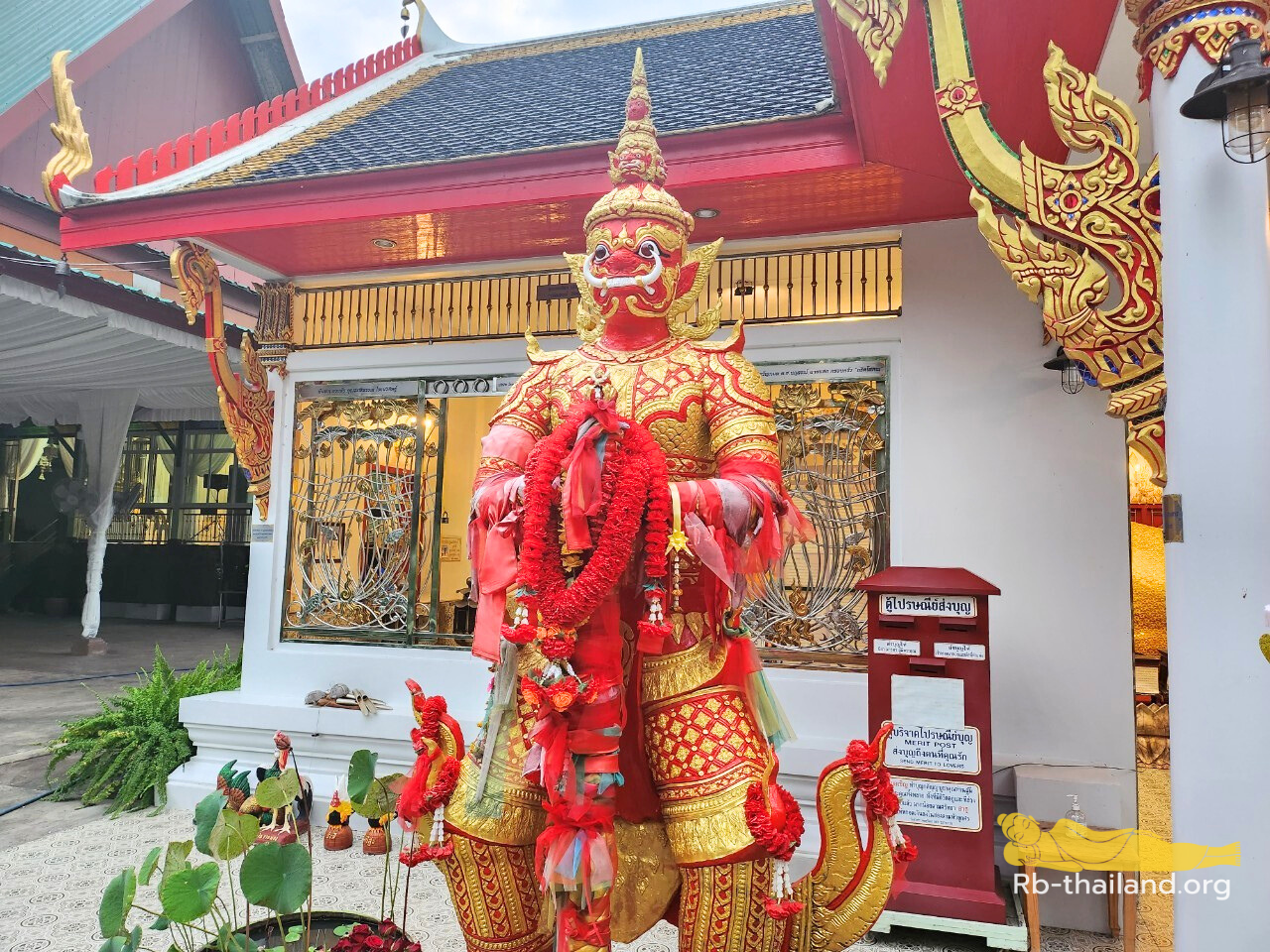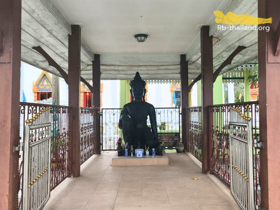 บริเวณหน้าวิหารพระนอนกระจก มีท้าวเวสสุวรรณให้ได้สักการะบูชา และบริเวณข้างยังมีวิหารพระสังกัจจายน์ และวิหารหลวงพ่อองค์ดำ